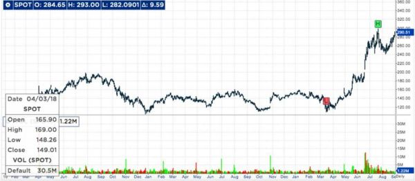 Spotify纽交所上市至今的股票走势图,图片来源:纽交所