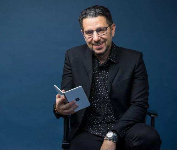 微软Surface之父、首席产品官帕诺斯·潘纳伊(Panos Panay)与折叠双屏安卓手机Surface Duo
