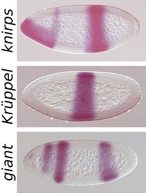 图5:果蝇早期胚胎中的间隔基因,它们的突变会导致特定身体片段的缺失 | Haecker A, Qi D, Lilja T, Moussian B, Andrioli LP, Luschnig S, Mannervik M