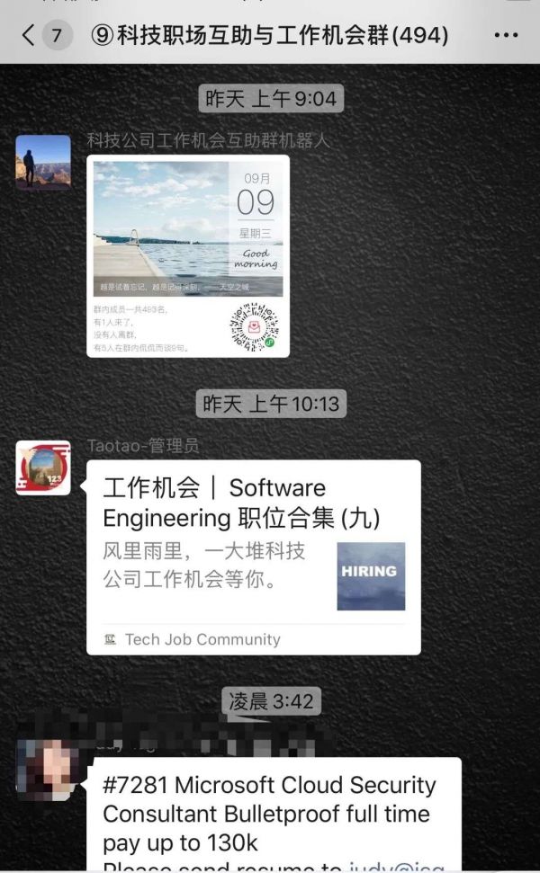 我当时还加入了一个华人互助社群,社群里面大家会分享招聘信息,帮助内推之类的,后来我找到这个工作后,想到可能还有别人没有找到,就想着去帮助他们。其实换谁都会这么做,都是华人,能帮都会去尽力帮一下。