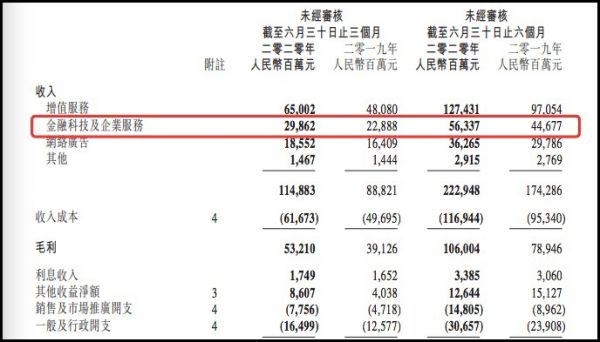 上半年腾讯金融科技营业收入 来源:腾讯2020年第二季度及半年度业绩报告