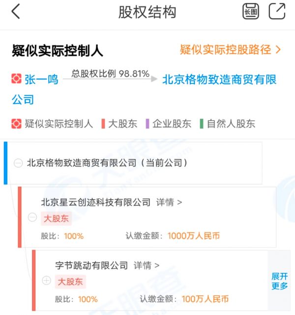 Tech星球(微信ID:tech618)独家发现,据天眼查显示,字节在去年通过旗下100%控股的北京格物致造商贸有限公司,打造了一款类似于“江小白”的快消类白酒,其推出的白酒名字叫做“随我小酒”,并注册了“随我”等相关商标。