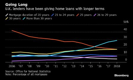 在争夺抵押贷款市场份额之后,住房贷款标准过去三年来变得宽松,而六分之一的抵押贷款持有人已经暂停还款。超过30年的房屋贷款占比从2015年的约19%、2010年的8.2%上升至2018年的29%,以减少每月还款额。