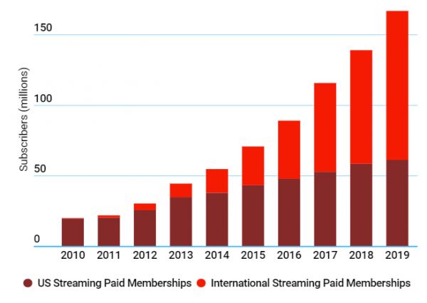 自2010年以来,Netflix的流媒体订阅量增加了八倍多。过去三年,它的国际用户增加了一倍多。