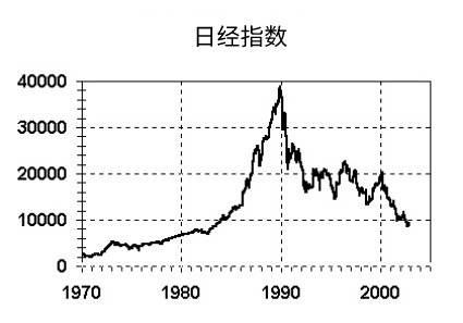 1970~2000年代日经平均指数走势图。