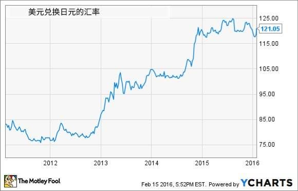 日元兑美元汇率,随着日元贬值,美元兑日元汇率自2013年起逐年上涨。