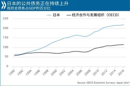 其次,安倍上台后,日本政府债务持续攀升,据国际货币基金组织等机构测算,2018年政府债务已经突破10万亿美元,占GDP比重达238%,为全球最高。