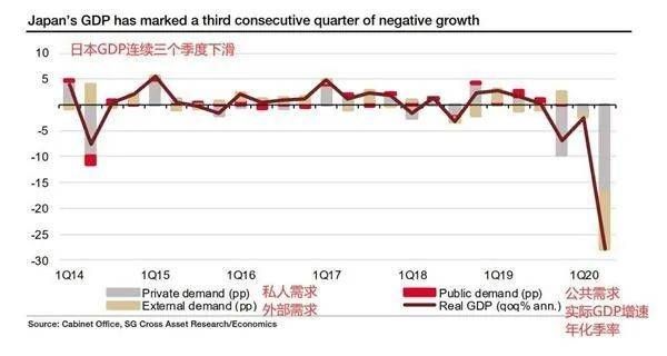 从图可以看出,日本GDP在2020年连跌三季。
