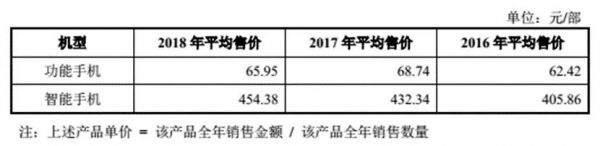 传音旗下功能手机和智能手机平均售价 / 传音招股书