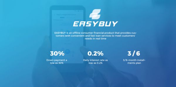 Easybuy在2019年推出,它以手机App为载体。通过Easybuy购买手机,用户可以只付手机售价的30%,选择三个月或六个月的贷款期,以6%到9%之间的月利率按月还款。