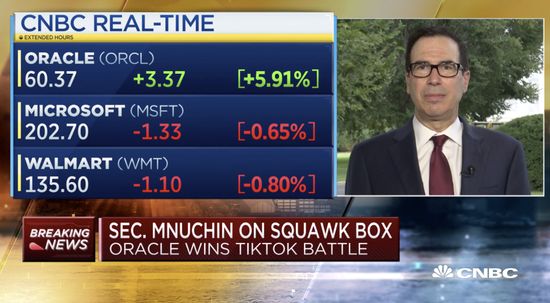 姆努钦14日上午对CNBC表示,美国政府计划在本周对该交易进行审查,“我只是从我们的立场来说,我们需要确保代码是安全的,美国人民的数据是安全的,电话信息是安全的,我们的技术团队期待着与甲骨文接下来的讨论工作。”