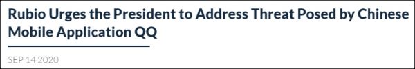 当地时间9月14日,卢比奥的参议员宣传网站主动公开了他11日写给特朗普的信。他在信中怂恿特朗普,要求将QQ纳入8月针对微信的行政命令中。