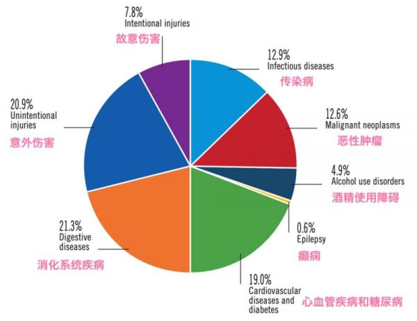 据世卫组织调查报告显示,每年全球因酒精致死300万人,酒精的有害使用占全球疾病负担的5.1%。
