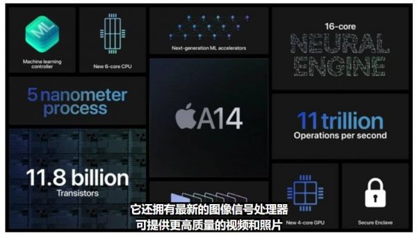 A14 Bionic芯片,是全球首款采用5nm技术的处理器,搭载6核心CPU与4核心GPU,中央处理器性能与之前的iPad Air采用的A12 Bionic相比,提升40%,图形处理能力提升30%。