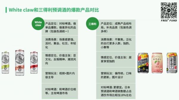 我们回顾了网红酒精气泡水白爪White Claw 2019年在美国爆红的逻辑,也分析了日本百年品牌三得利如何在成熟的酒业市场拓展预调酒产品线并做成行业第一。