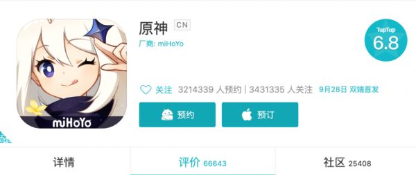 吐槽归吐槽,截至9月15日,9月28日首发的《原神》的官网预约已经超过830万、B站和TapTap各300万,海外也有300万。发布日至今的日均百指近7300,是《赛博朋克2077》的2倍,《黑神话:悟空》的7倍。