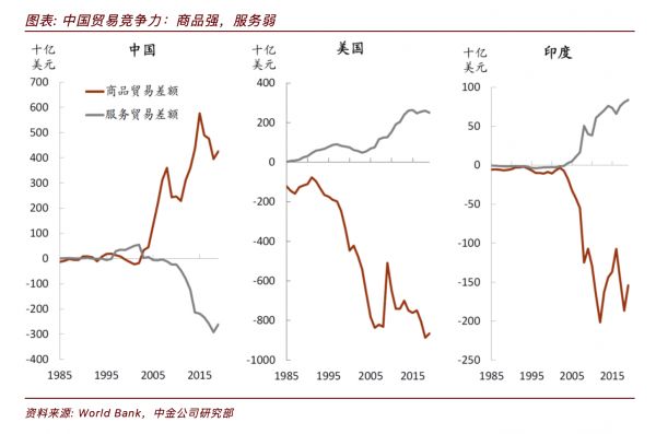自从中国在2001年加入WTO之后,国内制造业供给过剩的局面被强劲的外需所消耗,商品贸易成为了支撑中国经济的主要要素。在强劲的贸易顺差之下,服务贸易一直被市场所忽略。