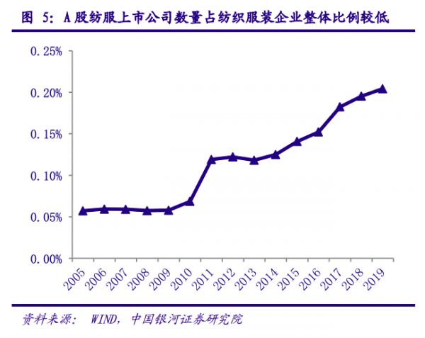 上市公司占服装行业整体比例