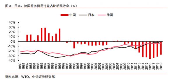 从发达国家的发展历程来看,后工业化阶段,服务贸易逆差从扩大到收窄,是一个必然的过程。