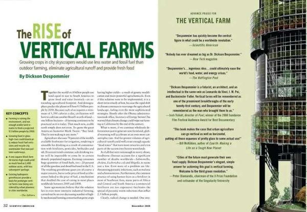 Despommier文章发表在2009年11月Scientific American(左),各界人士好评如潮(右)