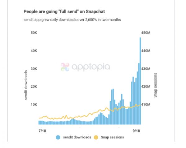 sendit 其实 2018 年就已经上线了,但最近才爆发式增长,与 Snapchat 的新一轮增长其实是高度协同的。