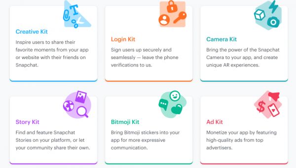 对外,Snapchat 还会向第三方 App 提供底层服务,比如今天讲的 sendit。类似 sendit 这种 App 的开发者可以从 Snapchat 那里得到一个叫 Snapkit 的工具包,通过这个工具包,第三方开发者可以快速接入 Snapchat 中,让自己产品的一部分功能通过 Snapchat 来完成。