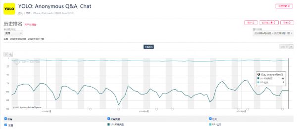YOLO 近两个月在美国 iOS 下载榜上的排名