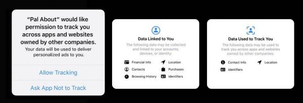 在 iOS 14 上,苹果将每一台 iPhone 的广告追踪功能做成了一个显性的隐私选项。当用户第一次打开 App 时,iOS 会主动询问用户“是否同意 App 对你进行跨网站、App 的追踪”。显然,大量用户会选择拒绝。