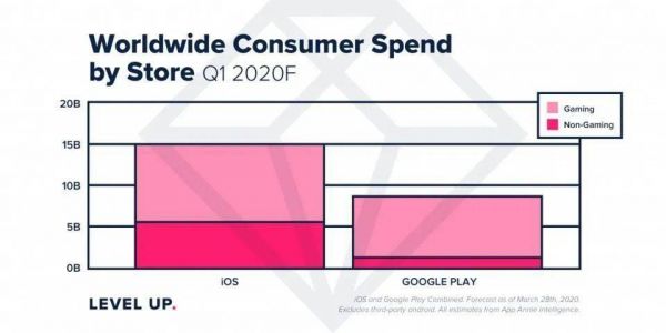 2020 年第一季度,iOS 应用市场规模高达 150 亿美元,差不多相当于安卓的两倍。考虑到 Facebook 和谷歌在 iOS App 里投放的广告有一大部分都是游戏广告,这部分业务对两家公司至关重要。
