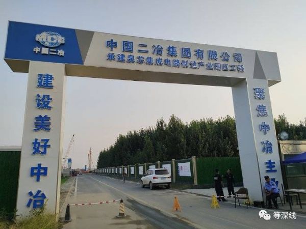 而在泉芯项目现场,记者看到,工程位于济南市章丘区郊外的一处荒野,四周围起高墙,且由密林挡住施工视线,现场只有一处入口,门书显示“中国二冶集团有限公司承建泉芯集成电路制造产业园区工程”。远望塔吊正在施工,但在记者试图进入现场拍摄施工情况时,保安以疫情防控为由拒绝了记者的要求。