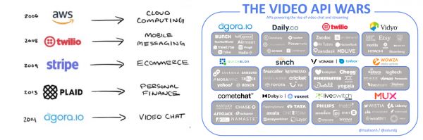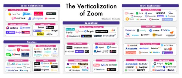 由于类似Agora之类的视频API的兴起,那些试图开发垂直产品好从Zoom那里偷走一点点蛋糕的公司就不必每次都从零开始。只需几行代码,他们就能插入可靠的视频,然后花时间和资源去打造能引起特定目标客户群共鸣的用户体验。