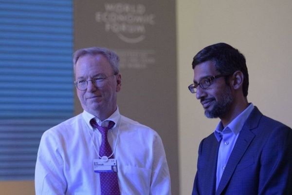 埃里克·施密特和皮查伊2018年出席瑞士达沃斯世界经济论坛