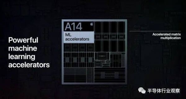 苹果公布的A14 SoC使用5nm工艺,而新的Neural Engine则使用16核心设计,其峰值算力可达11 TOPS,远超上一代的Neural Engine(6TOPS)。在发布会上,苹果明确表示该Neural Engine主要支持加速矩阵相乘。此外,苹果还表示新的Neural Engine结合CPU上的机器学习加速,可以将实际的AI应用体验相对于前代提升十倍。