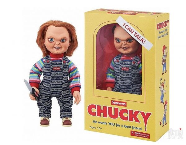另外一款以电影《Seed of Chucky》为主题的联名娃娃同样颇受关注。Supreme将电影中的“鬼娃娃”原样复刻,尽管娃娃的面部表情依旧狰狞,但穿上布满“Supreme”Logo的衣服后,成了恐怖电影里最“潮”的主角。