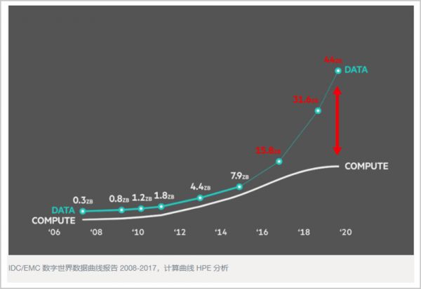 在IDC/EMC发布的一份报告中,最近十年来,全世界算力的增长远远滞后于数据的增长。