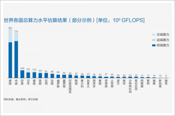 来自罗兰贝格等国际权威机构的数据显示,在全球各国总算力的排行榜上,中美两国遥遥领先。紧随其后的,也都是英、法、德、印、日等经济强国。
