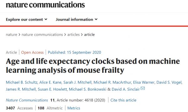 近日,哈佛医学院 Blavatnik 学院遗传学教授 David Sinclair 领导的研究小组使用机器学习算法开发了两个时钟,即 FRIGHT 时钟和 AFRAID 时钟,成功在老年小鼠中预测其生理年龄和实际寿命。