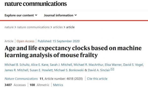 近日,哈佛医学院 Blavatnik 学院遗传学教授 David Sinclair 领导的研究小组使用机器学习算法开发了两个时钟,即 FRIGHT 时钟和 AFRAID 时钟,成功在老年小鼠中预测其生理年龄和实际寿命。该研究于 9 月 15 日发表在 Nature Communications《自然通讯》杂志中。