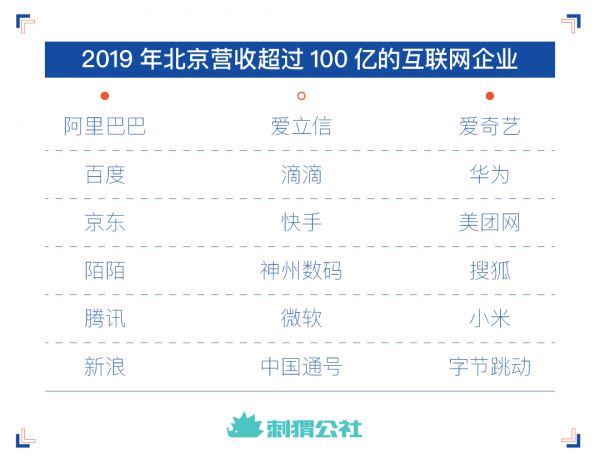 作为“活力北京”的代表,北京互联网产业“傲冠全国”。2019年,北京该行业营收过100亿的相关企业18家,数量占全国同行业百强榜的3成。软件和信息服务业实现营收13464.2亿元,占全国比重23%。