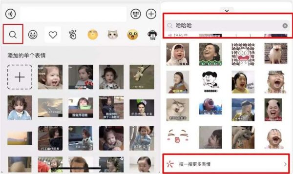 拉动页面到底部,将会出现“搜一搜更多表情”入口,进入会加载更多关于该关键词的表情包。这样将表情的相关功能都聚合到聊天发表情的场景里,可以很好地优化用户体验。