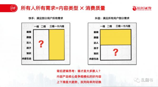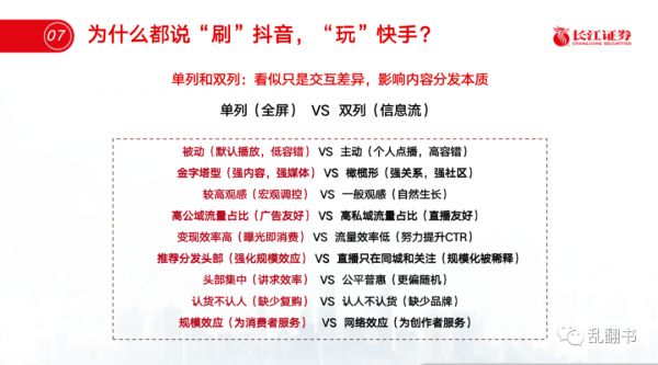 9月初去长江证券做了次分享,聊如何研究短视频产品的框架,从单列双列和内容生态入手,把抖音和快手最近的变化放进来一起讲。核心结论是用户增长主要靠消费规模驱动,所以要做大最强内容生态。