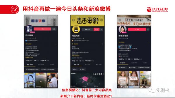 比如今天新闻已经成为抖音的第一大内容门类。像是四川观察这个账号,半年发布6000条内容,在PC时代可能就是个内容农场。但是赶上了平台做内容泛化的档口,变成了包括央视在内各地传媒机构学习的标本,因为短视频产品的系统更加健壮,而且树立这个标杆有利于吸引更多媒体入驻主动来贡献内容。要知道,在头条号时代,头部和机构媒体内容都是需要花钱采买的。