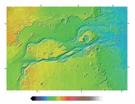 在太阳系内,只有火星与地球一样,表面发育了大量的河道,保留了大量流水冲刷的痕迹。根据其形成年龄和表面特点,可划分为三种水流地貌类型,即网状河谷、外流河道和冲沟[1]。
