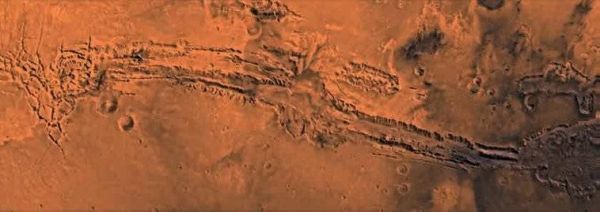 “水手谷”(Valles Marineris)太阳系最大、最长的峡谷,位于赤道附近,长3760公里(图片来源:NASA)