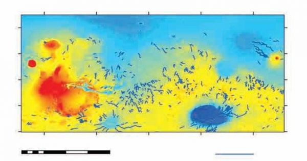 火星表面较大的网状河谷分布图(图片来源:《火星科学概论》)