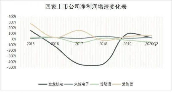 自2015年以来,四家上市公司营收增速除火炬电子每年正增长外,其余三家最近两年增长不及预期,其中金龙机电与普路通还出现负增长。有意思的是,2017-2018年两家公司增速下滑之时,恰好是小米手机市场份额逐渐降低的时间节点。