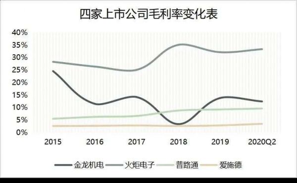 无论是零部件生产厂商金龙机电与火炬电子,还是供应链管理的普路通与线下分销商爱施德,四家公司整体毛利率都低于40%,有三家公司毛利率在今年二季度不到20%。