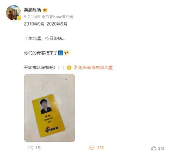 9月2日,《足球报》记者白国华用一篇深情长文告别了供职18年的老东家:“我以为会终老于此,但最终敌不过墙外的诱惑。” 5天后,“驰哥”陈驰用一条微博,告别了效力10年的新浪:“十年北漂,今日终结,你们的青春结束了。”