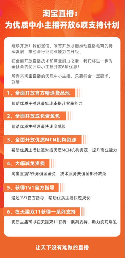 而淘宝直播的系列全面开放战略,也为更多的中小主播创造更好的收益。不少业内人士认为,如今,“中小主播的机会应该在淘宝”。