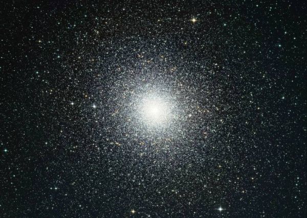 球状星团 (globular cluster) 可以由上百万颗恒星因引力束缚而形成的球状体系。本光学图片是球状星团杜鹃座47(NGC 104),被认为中心存在一个2200倍太阳质量的黑洞,但对该星团中的射电脉冲星的长期观测数据似不支持黑洞存在。丨图源:Dieter Willasch (Astro-Cabinet)
